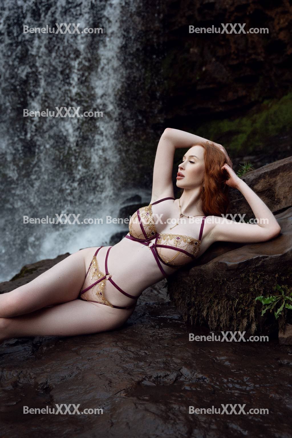 belle et rousse naturelle aux longs cheveux flamboyants.